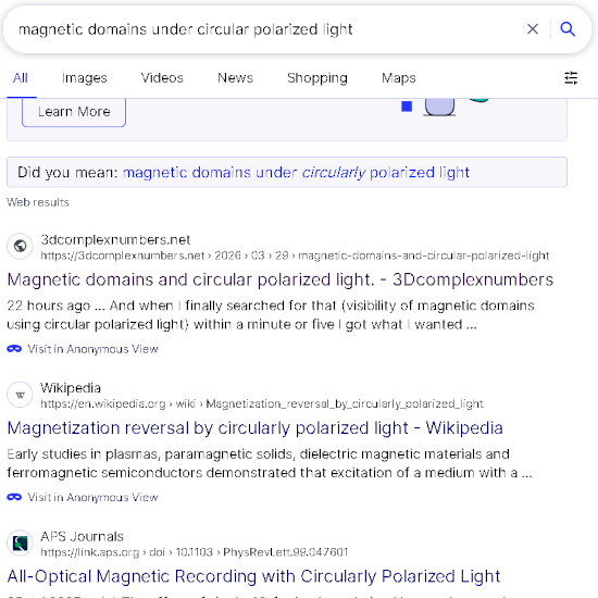 Item 2) New math post on magnetic domains and circular light.