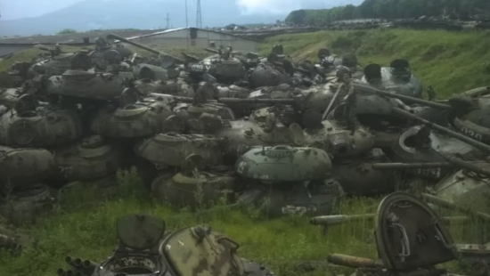 over satellite images of stockpiles of Russian military gear. Some